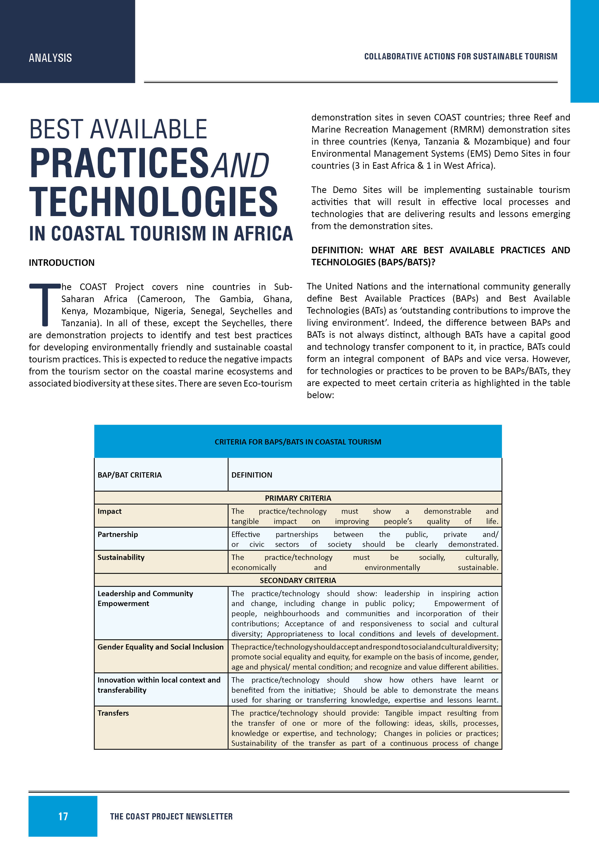 Examples of BAPs/BATs in the COAST Project