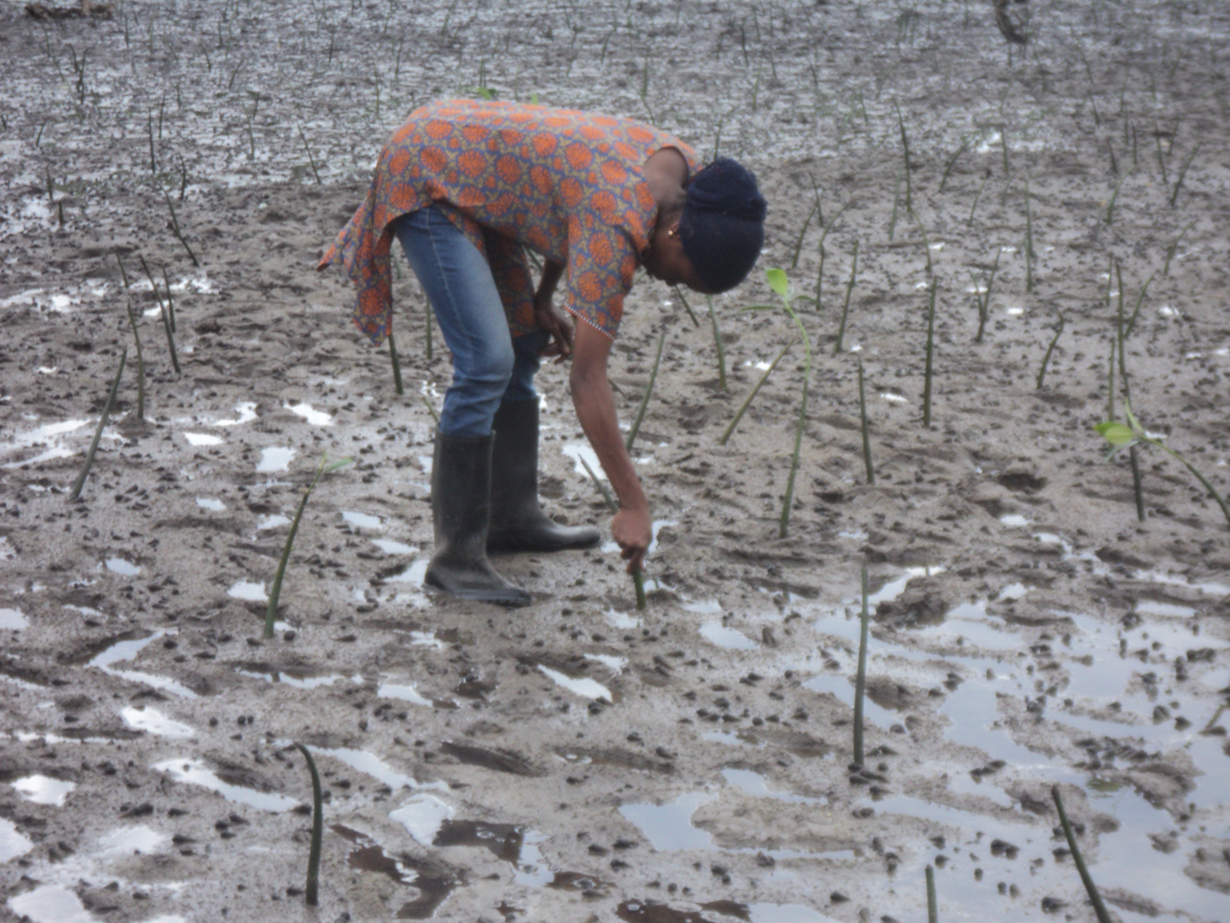 Mangoves officer from the district checking out if the mangroves have been planted well.JPG